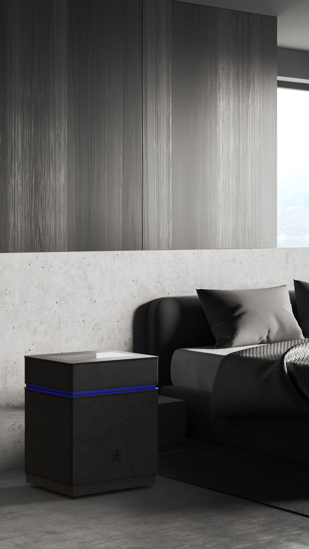 Wildlederoptik Schwarz: Die Wildlederoptik in Schwarz verleiht dem MITOCUBE eine exklusive, hochwertige Präsenz. Für alle, die schlichte Eleganz mit einer edlen Haptik verbinden möchten.